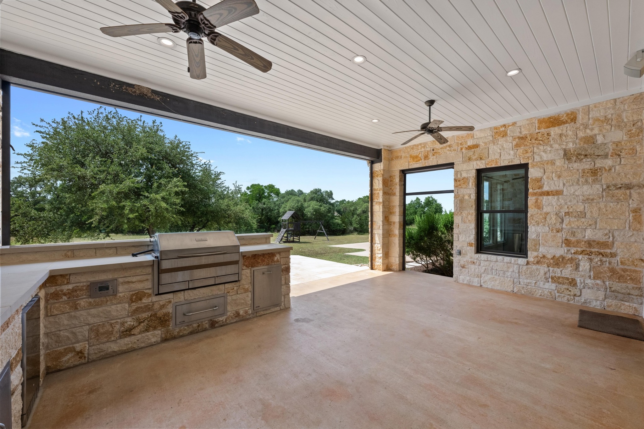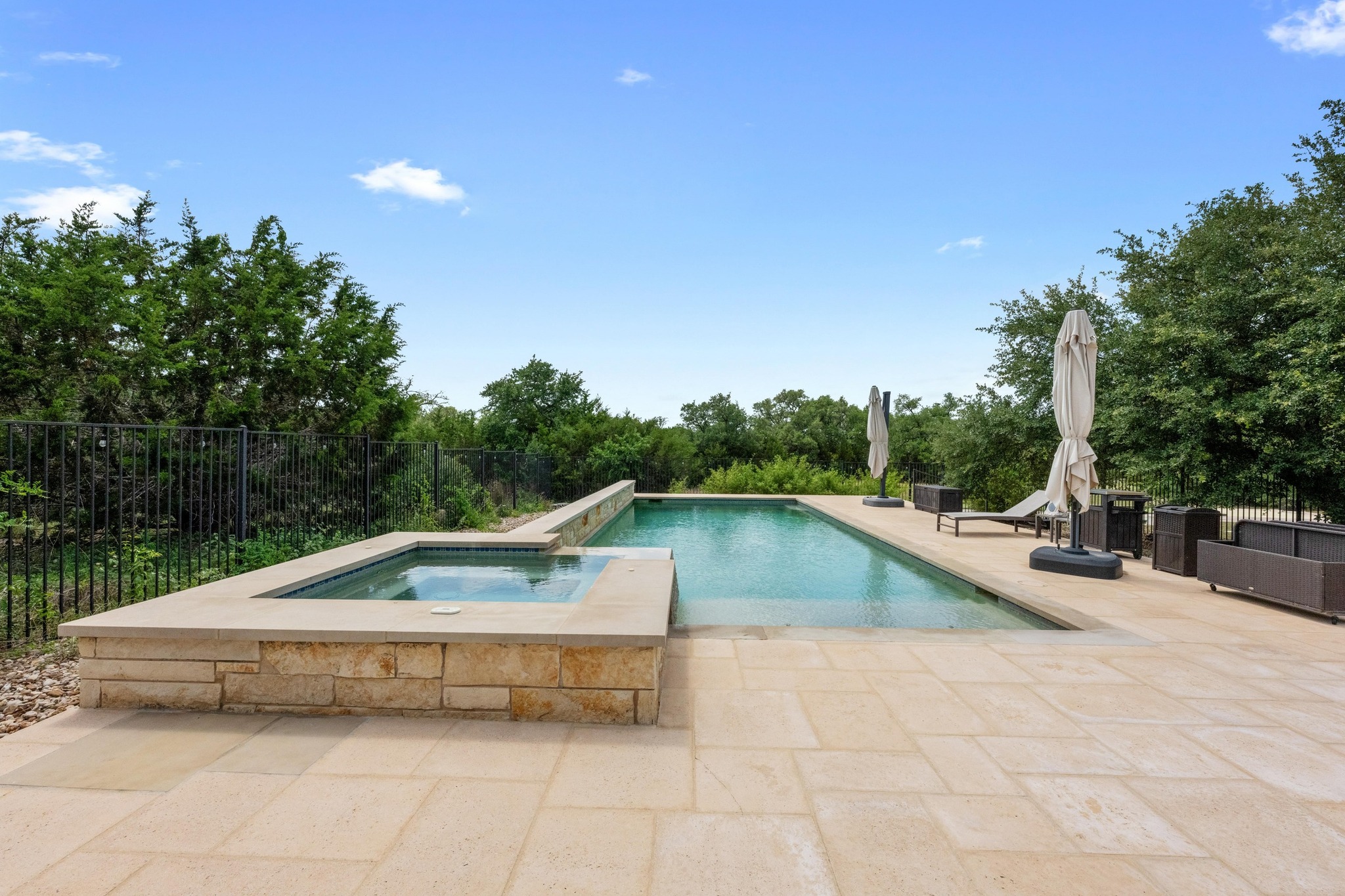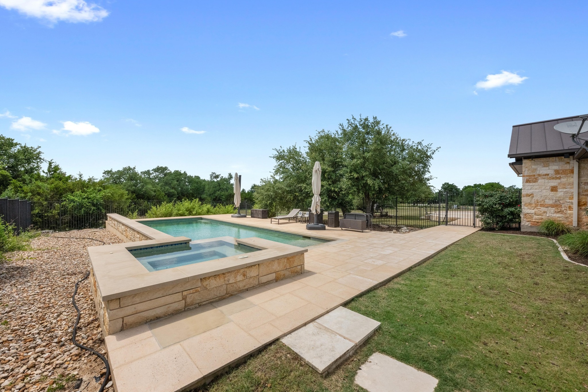 Welcome to an exquisite one-story retreat situated on 2.4 acres in the tranquil Vineyard neighborhood of Driftwood, Texas. This stunning Texas limestone home, crowned with a sleek metal roof, commands attention on a corner lot with exceptional street appeal. An expansive driveway sweeps toward a three-car garage, setting the stage for a property designed for both luxury and practicality. Equipped with a Generac generator, tankless water heater, private well, and water storage tank, this home ensures seamless living. The backyard is a true oasis, boasting a shimmering pool and spa, a fully equipped outdoor kitchen, and a charming pizza oven for al fresco dining. For endless fun, enjoy the bocci ball pad, basketball court, and playground, all framed by breathtaking views of the Texas Hill Country and the neighboring Driftwood Winery.